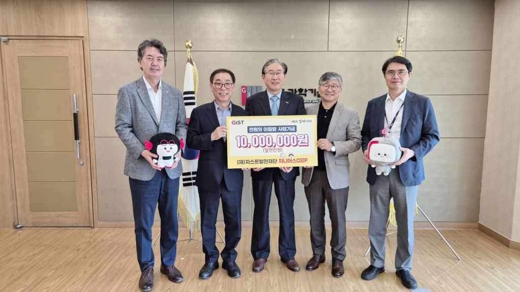 광주과학기술원(GIST)은 (재)지스트발전재단이 GIST 캠퍼스 내에서 운영 중인 팝업스토어 '지니어스COOP'의 첫 판매 수익금 1,000만 원을 GIST의 '천원의 아침밥' 사업에 기부했다고 2일 밝혔다.