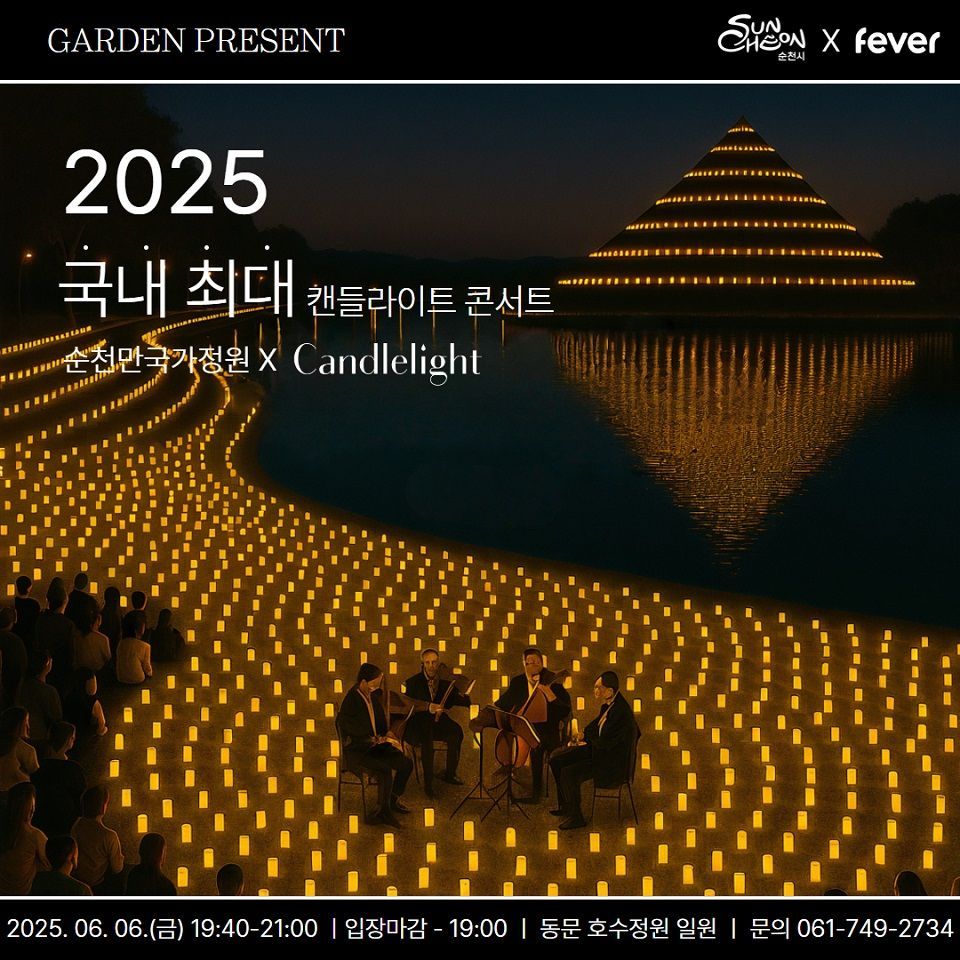 전남 순천시(시장 노관규)는 오는 6일 저녁 7시 40분 국내 최대 규모의 야외 '캔들라이트 콘서트'를 순천만국가정원 동문 호수정원에서 개최한다고 2일 밝혔다.