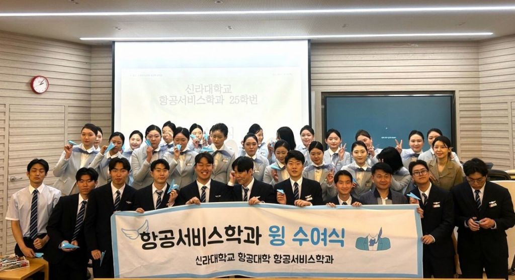 신라대학교(총장 허남식) 항공서비스학과가 지난 5월 29일 1학년 신입생을 대상으로 '2025학년도 윙(wing) 수여식'을 열었다.