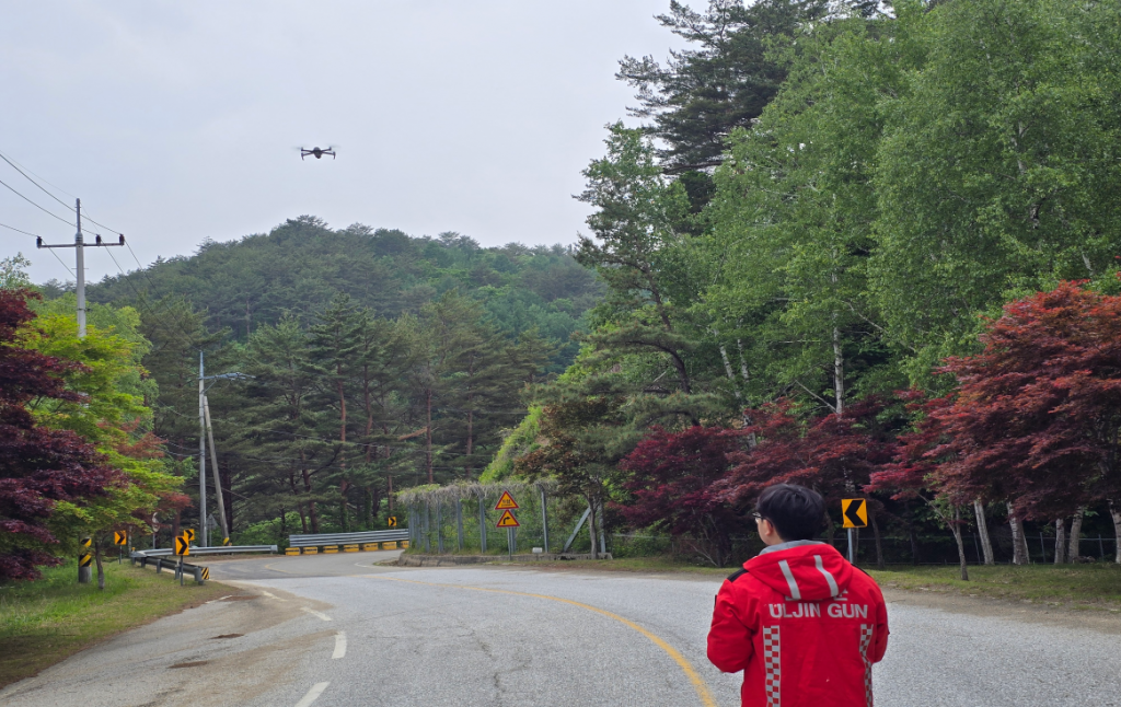 드론을 활용한 고사목 예찰 시행. 울진군 제공