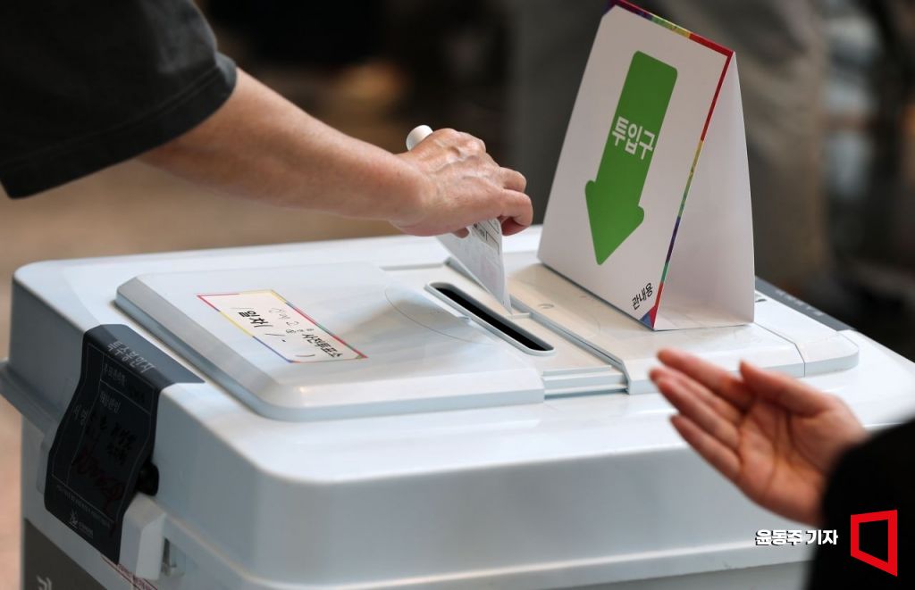 제21대 대통령선거 사전투표 첫날인 29일 한 사전투표소에서 유권자들이 투표하고 있다(기사 이해를 돕기 위한 사진). 윤동주 기자
