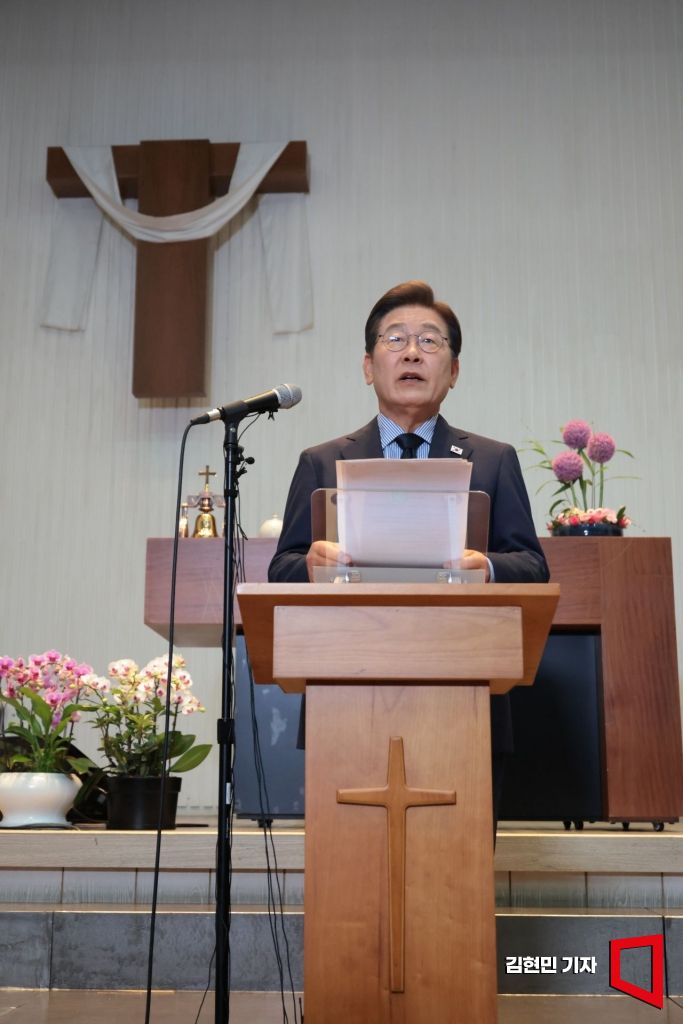 이재명 더불어민주당 대선 후보가 2일 경기 성남시 수정구 성남주민교회에서 기자회견을 하고 있다. 2025.6.2 김현민 기자