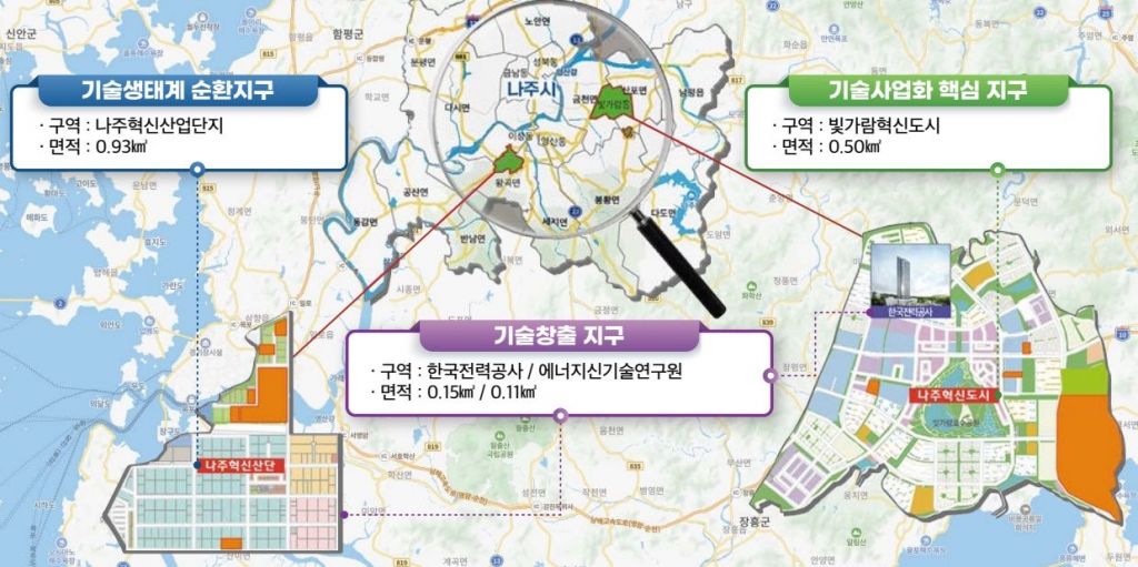 시는 한국전력공사와 에너지신기술연구소를 기술 핵심 기관, 나주 혁신산단 및 혁신도시 산학연 클러스터를 연구개발 배후 공간으로 육성해왔다.
