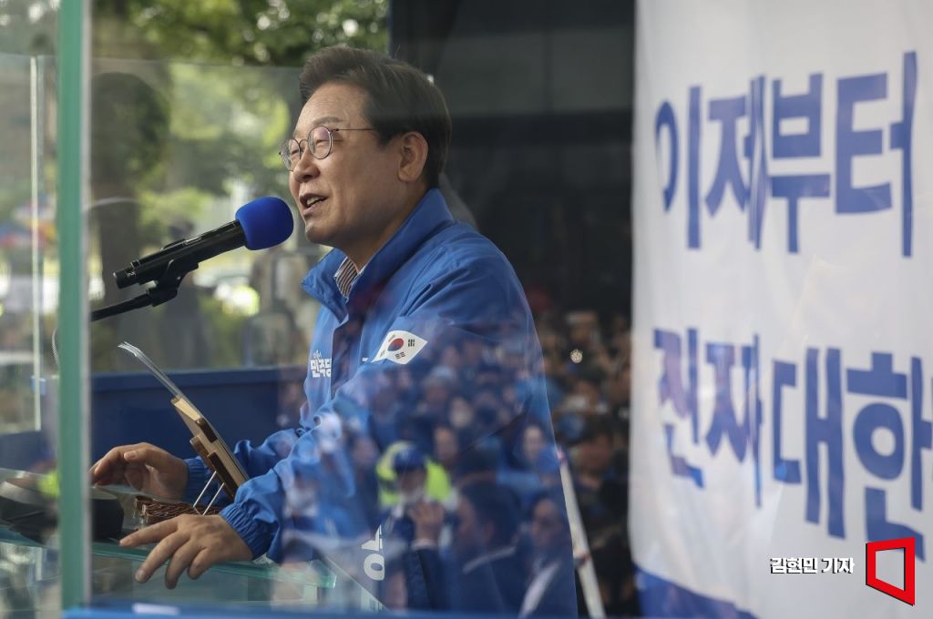 이재명 더불어민주당 대선 후보가 선거를 하루 앞둔 2일 경기 하남시 스타필드 광장에서 열린 유세에서 지지를 호소하고 있다.