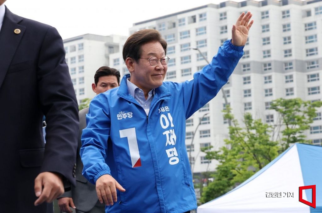 이재명 더불어민주당 대선 후보가 2일 서울 강서구 서울식물원 마곡나루광장에서 열린 강서구·양천구 유세에서 지지를 호소하고 있다.