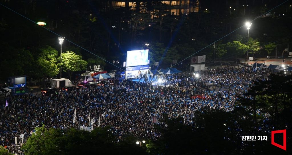 이재명 더불어민주당 대선 후보가 2일 많은 지지자들이 운집한 서울 영등포구 여의도공원에서 피날레 유세를 하고 있다.