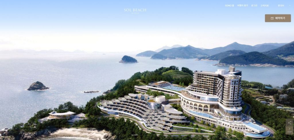 쏠비치 남해는 남해의 천혜 자연환경과 지중해풍 건축이 어우러진 리조트로 남해 바다가 한눈에 내려다보이는 절벽 위에 자리잡고 있다. 오랜 세월이 빚어낸 다랭이 논 풍경 위로 층층이 배치된 지중해풍 건축물들과 태양 아래 반짝이는 푸른 바다, 멀리 펼쳐진 작은 섬들이 이국적인 분위기를 연출한다.