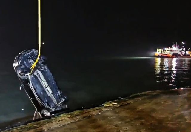 지난 2일 오후 전남 진도군 임회면 진도항 인근 해상으로 빠진 일가족 탑승 차량이 인양되고 있다. 목포해양경찰서 제공, 연합뉴스