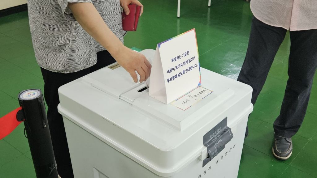 제21대 대선 당일 경남 창원시 마산회원구의 한 투표소에서 한 시민이 투표함에 기표용지를 넣고 있다. 이세령 기자