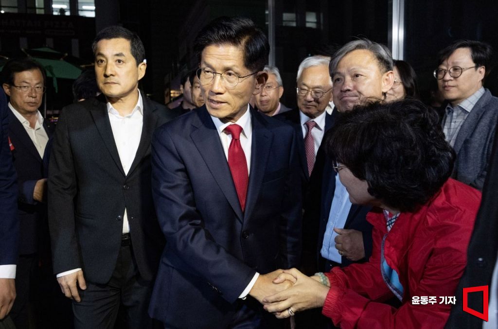 제21대 대통령 선거에서 이재명 더불어민주당 대선 후보의 당선이 확실시된 4일 새벽 김문수 국민의힘 대선후보가 대선 승복 기자회견을 하기 위해 서울 여의도 국민의힘 중앙당사로 들어서고 있다.
