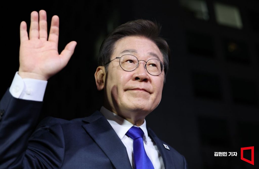 제21대 대통령 당선이 확실시되는 이재명 더불어민주당 대선 후보가 4일 선대위원장들에게 감사 인사를 하기 위해 서울 여의도 중앙당사로 들어가고 있다. 2025.6.4 김현민 기자