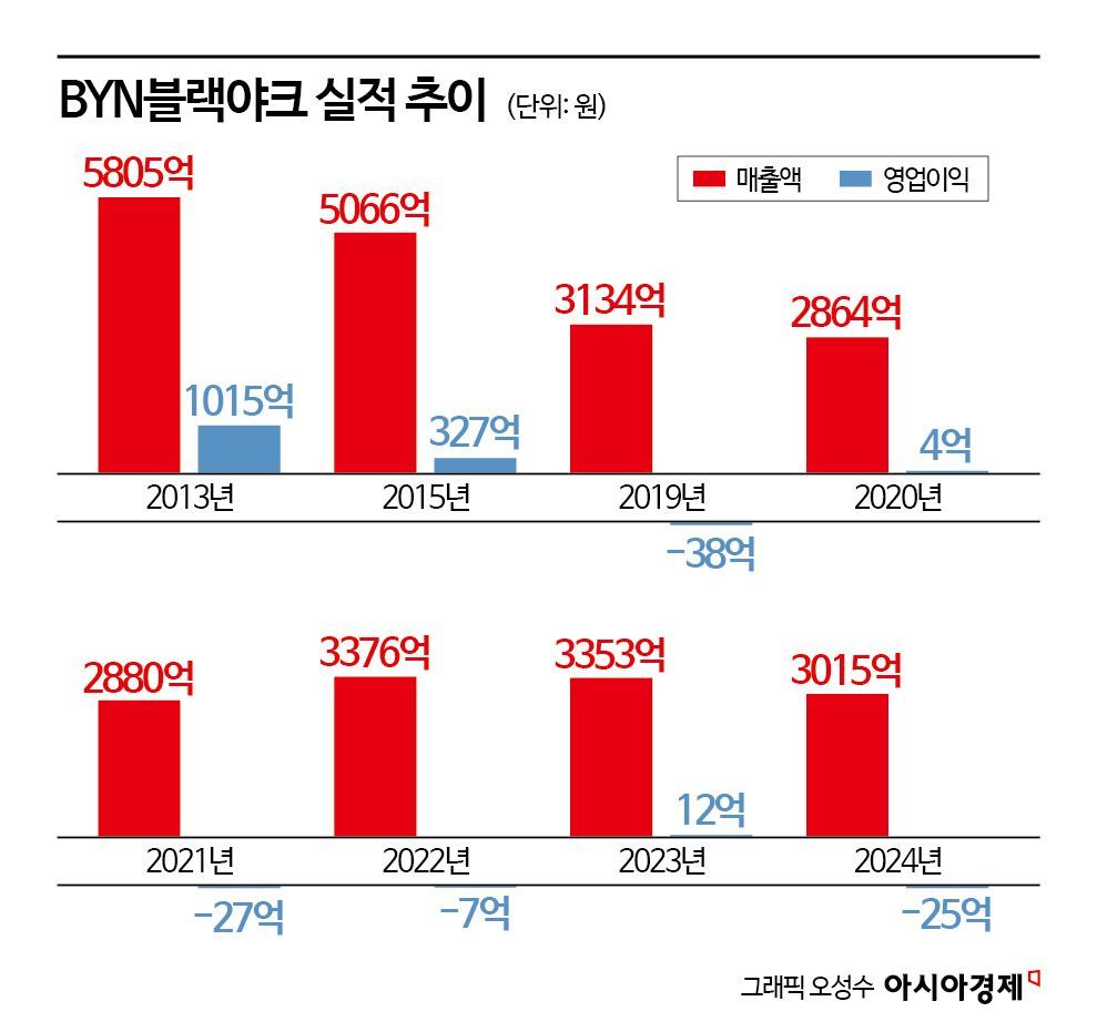 그 결과 BYN블랙야크는 지난해 연결 매출액 3015억원, 영업이익은 -25억원으로 집계됐다. 매출액은 전년 동기 대비 10% 감소했고 영업이익은 적자로 전환했다. BYN블랙야크는 10여년 전 약 5800억원에 달하는 매출을 올렸지만, 최근 수년간 3000억원 수준을 이어가고 있다. 2010년대 초반 등산복과 헤비다운에 대한 수요가 늘면서 아웃도어 업계는 호황을 누렸지만, 2014년부터 브랜드 간 과도한 경쟁과 소비자들의 패션 트렌드 변화 등으로 매출이 급격하게 빠졌다.
