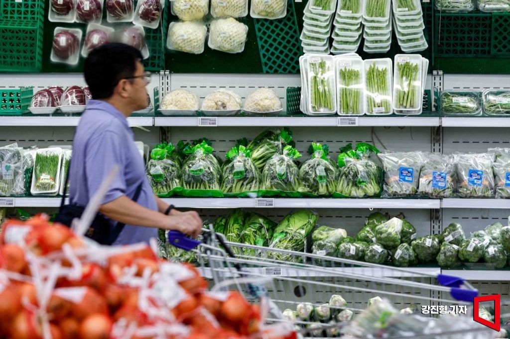 서울 서초구 하나로마트 양재점을 찾은 고객이 채소 판매대를 보고 있다.