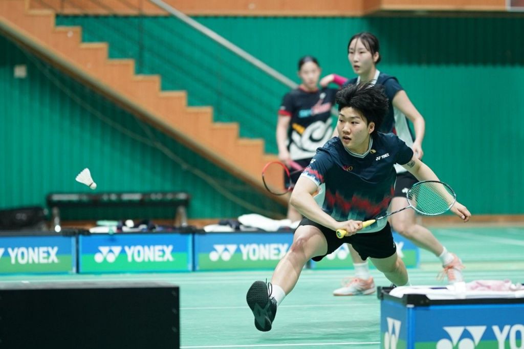 ‘2025 전국연맹종별 배드민턴선수권대회’에 출전한 구로구청 여자 배드민턴팀의 박지윤 선수(앞)와 전주이 선수(뒤)가 복식 경기에 임하고 있다. 구로구 제공.
