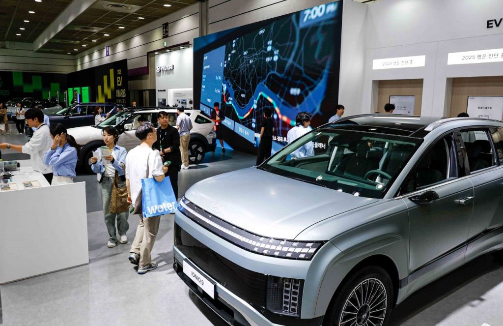 4일 서울 강남구 코엑스에서 열린 'EV트렌드코리아'에 참가한 관람객들이 행사장에 전시된 다양한 전기차를 보고 있다.