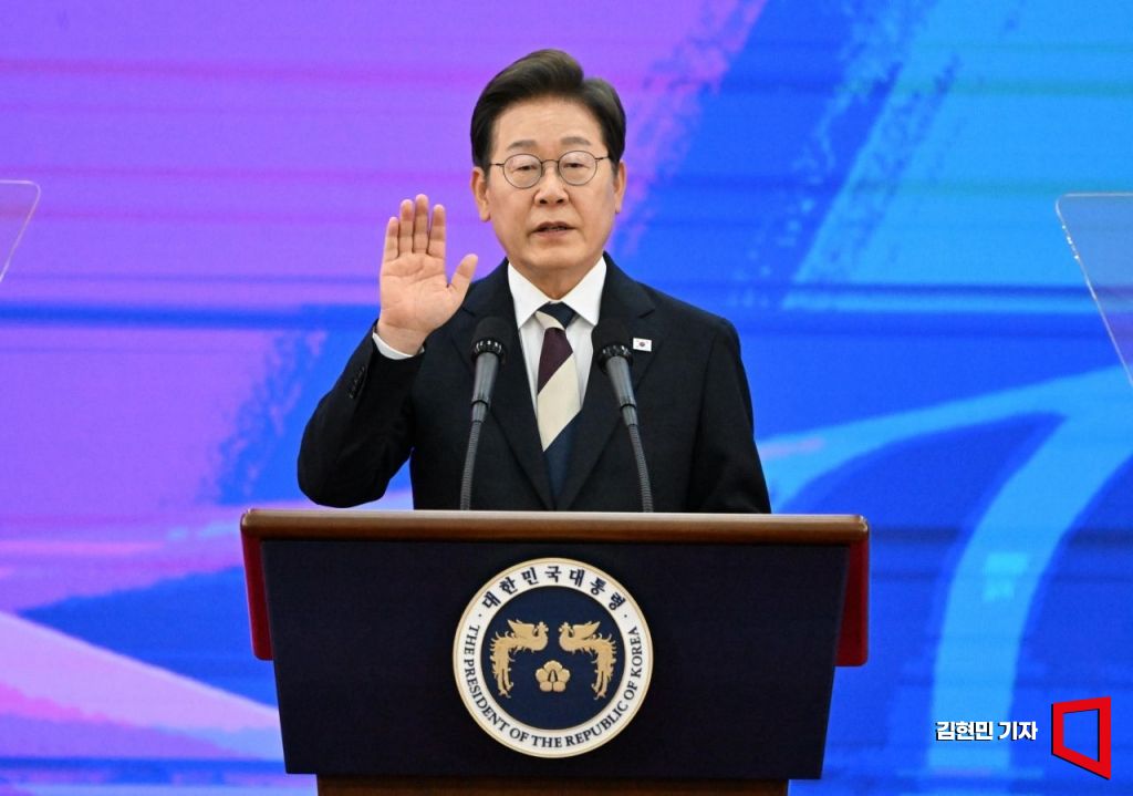 이재명 제21대 대한민국 대통령이 4일 국회에서 취임 선서를 하고 있다.