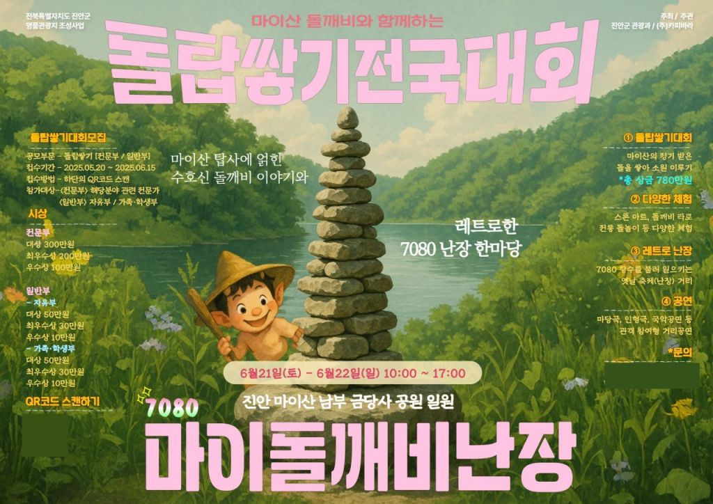 정난경 군 관광과장은 "이번 '마이돌깨비 난장'은 마이산과 진안의 지역 자원을 활용한 이색 축제로, 돌탑 쌓기 대회부터 레트로 체험, 공연, 먹거리까지 전 세대가 함께 즐길 수 있는 다양한 프로그램으로 준비했다"며 "가족, 친구, 연인 모두가 함께 찾아와 소중한 추억을 만들고 진안의 새로운 매력을 경험하는 기회가 되길 바란다"고 말했다.