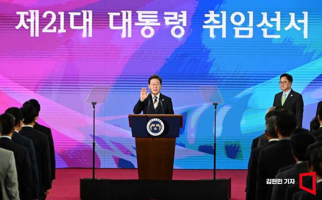 이재명 대통령이 4일 국회에서 열린 제21대 대통령 취임선서식에서 취임 선서를 하고 있다. 2025.6.4 김현민 기자