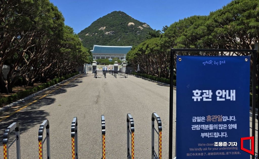 이재명 대통령이 집무실을 청와대로 이전할 예정인 가운데 청와대 개·보수 작업이 완료될 때까지는 당분간 용산 대통령실로 출근하게 된다. 윤석열 전 대통령이 2022년 5월 10일 대통령 집무실을 용산 국방부 청사로 공식 이전한 지 3년여 만에 '용산 시대'를 마감한다. 4일 이재명 대통령 취임날 휴관일을 맞은 청와대의 모습.