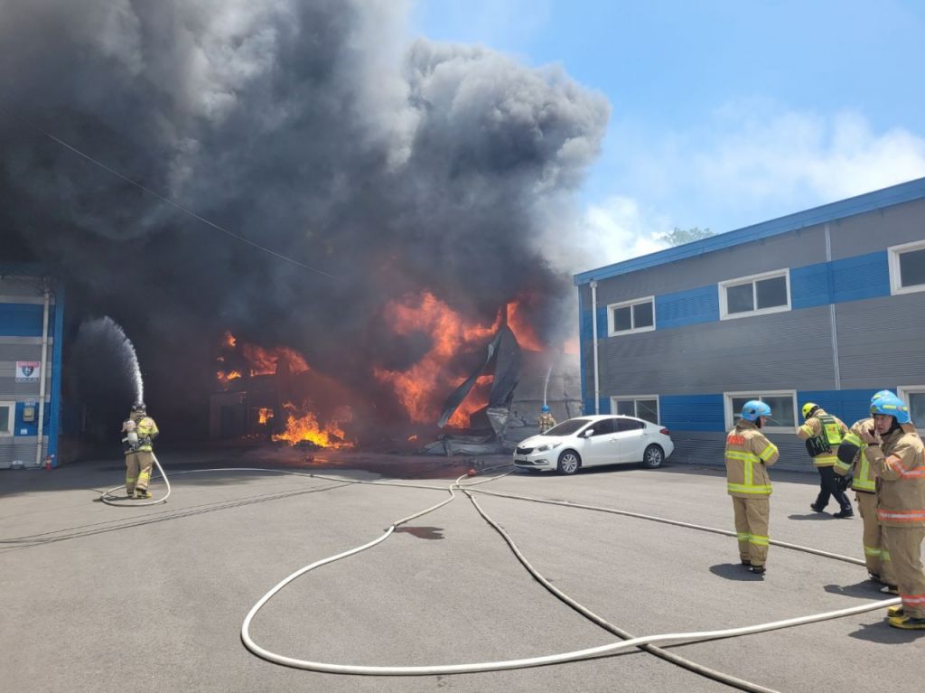 경기도소방재난본부에 따르면 이날 오후 1시 4분쯤 "검은 연기가 치솟는다"는 신고가 잇따라 접수되면서 총 12건의 신고가 접수됐다. 화재는 철골 구조의 단층 창고 2동(연면적 654㎡)에서 발생했으며, 강한 바람과 함께 연소 범위가 빠르게 확산해 소방 당국은 오후 1시 20분 대응 1단계를 발령했다.