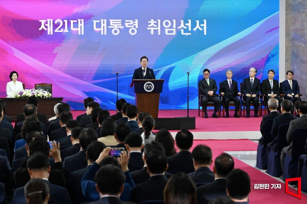 이재명 대통령이 4일 서울 여의도 국회에서 제21대 대통령 취임사를 하고 있다.