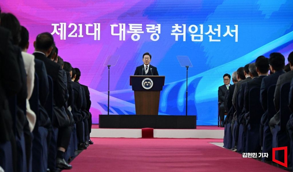 이재명 대통령이 4일 서울 여의도 국회에서 제21대 대통령 취임사를 하고 있다.
