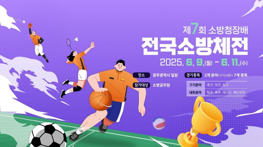 전국 소방공무원들이 스포츠를 통해 하나 되는 '제7회 소방청장배 전국소방체전'이 오는 9일 김대중컨벤션센터에서 개막한다. 소방체전은 11일까지 사흘간 펼쳐진다,