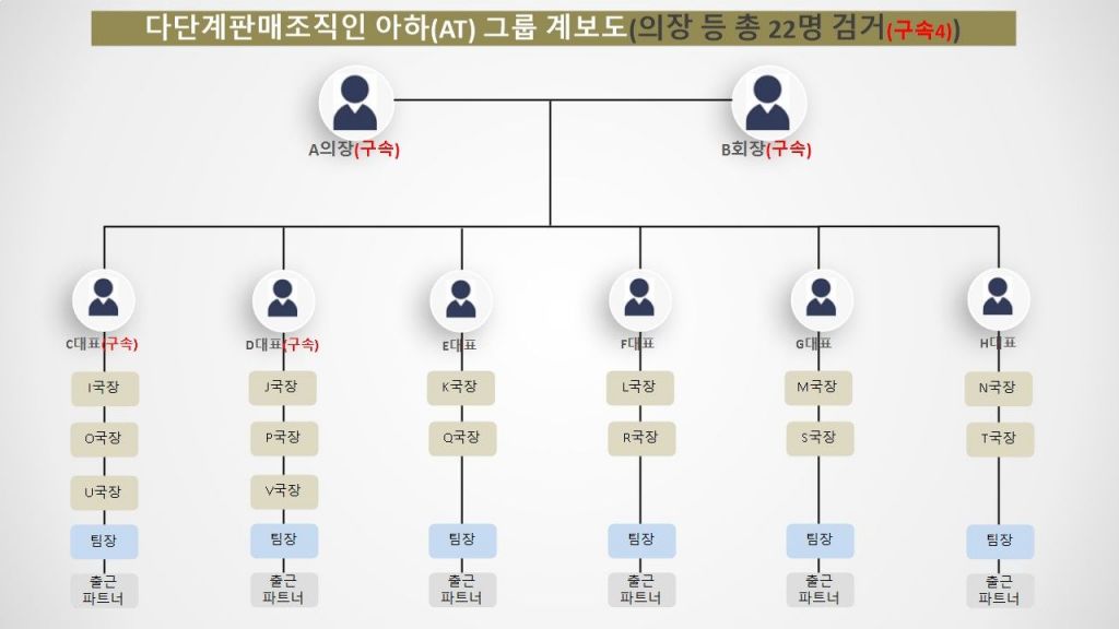 다단계 판매조직으로 드러나 아하(AT)그룹 조직도. 경남경찰청 제공