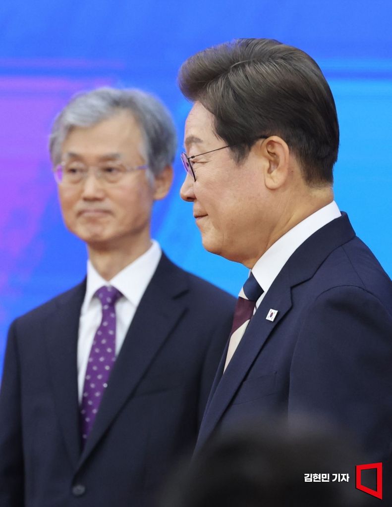 이재명 제21대 대통령이 4일 오전 서울 여의도 국회 로텐더 홀에서 취임선서식을 마친 뒤 조희대 대법원장 등과 인사를 한 뒤 이동하고 있다. 국회사진기자단