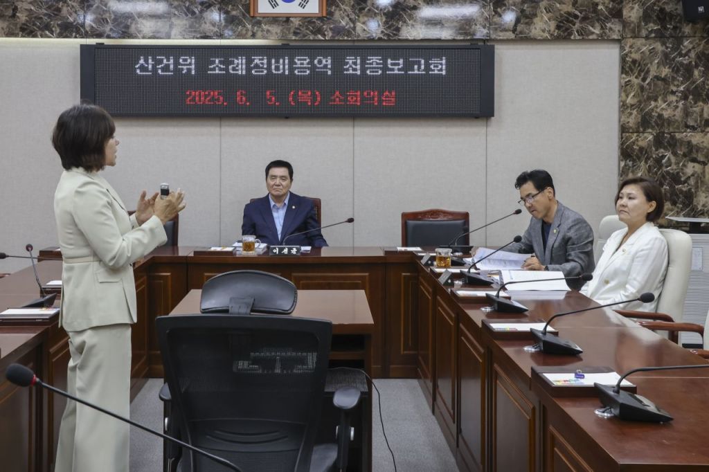 이날 보고회에는 한국자치법규연구소 최인혜 박사와 이선균 대표의원을 비롯한 산업건설위원장 최선경 의원, 권영식 의원 및 관계기관 담당자 등이 참석해 보고된 내용을 바탕으로 조례 정비의 구체적인 추진 방안을 논의했다.