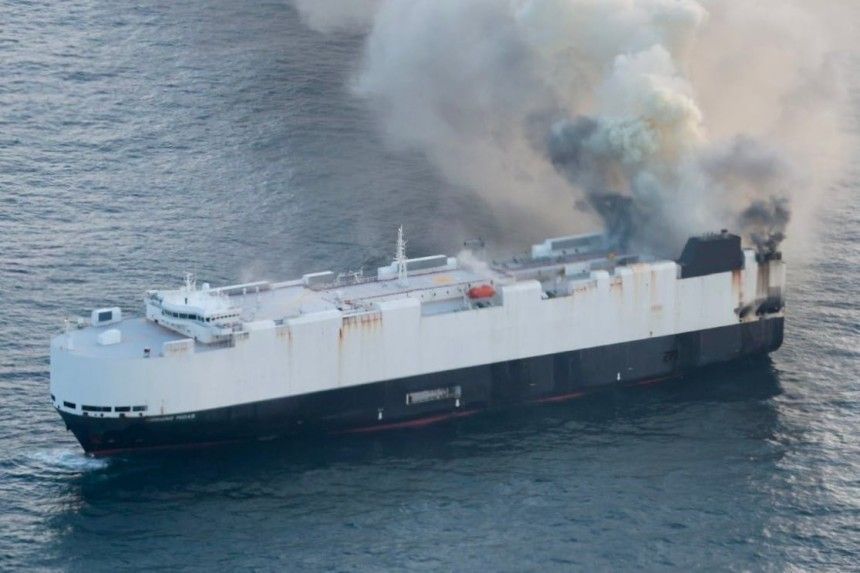 전기차를 포함한 차량 3000대를 실은 채 바다 한가운데를 지나던 화물선에 화재가 발생했다. 선원 22명은 긴급 대피한 것으로 전해졌다.