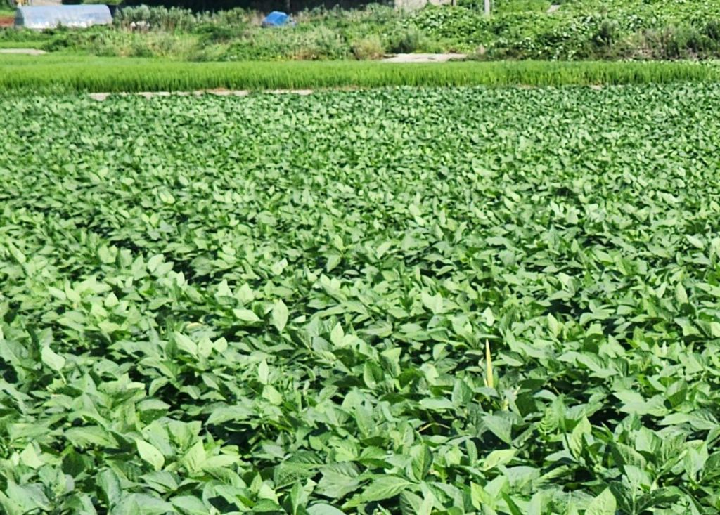 전라남도는 쌀 적정 생산을 위해 논에 벼 대신 논콩, 옥수수 등 타작물 생산기반을 확충하기 위한 2026년 전략작물 산업화 지원사업 대상자를 모집한다. 사진은 전남 무안군 한 논콩밭 전경. 전남도 제공