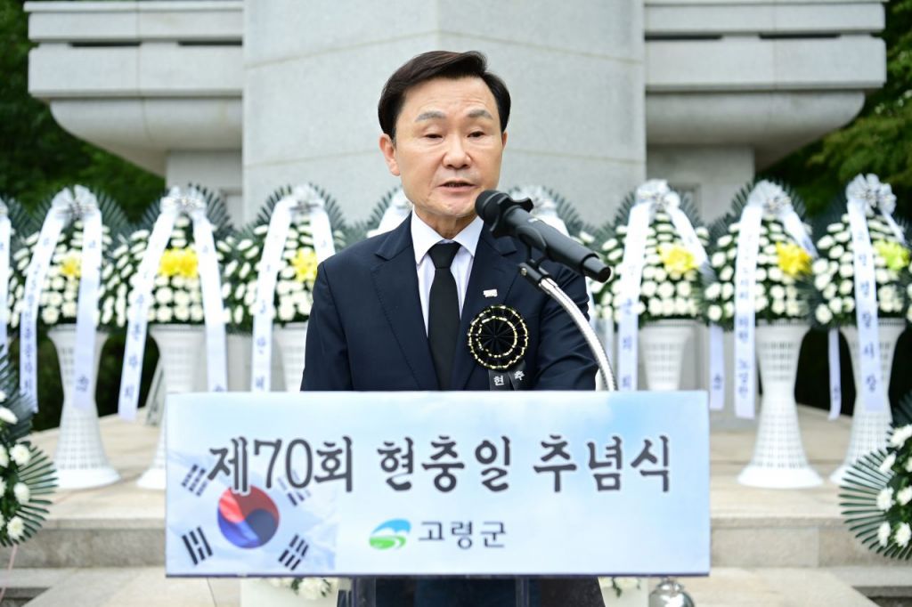 이남철 고령군수는 추념사에서 "조국을 위해 목숨을 바친 순국선열과 호국영령께 깊은 감사와 경의를 표한다"며 "그 숭고한 정신을 잊지 않고 유가족분들께도 지속적인 예우를 다하겠다"고 전했다.