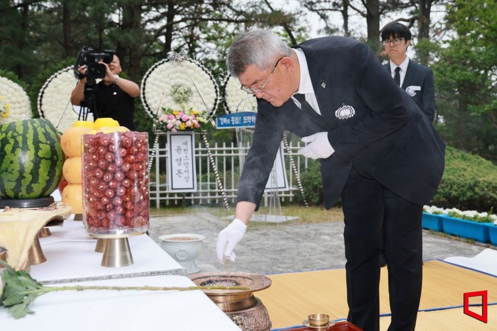김학동 예천군수가 6일 제70회 현충일 맞아 순국선열과 호국영령에 대한 존경과 감사의 마음으로 헌화와 분향을 하고 있다.