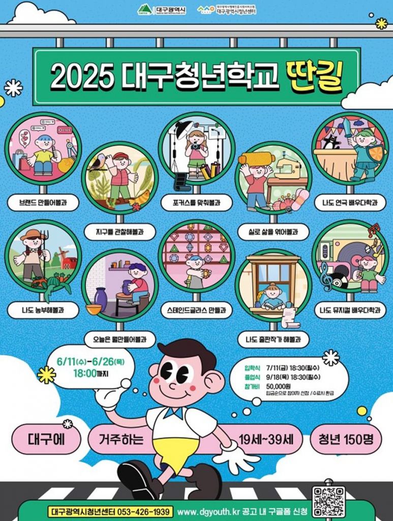 대구시는 청년들의 새로운 진로 가능성을 열어줄 진로교육 프로그램 '대구청년학교 딴길'에 참여할 청년들을 11일 부터 26일 까지 모집한다.