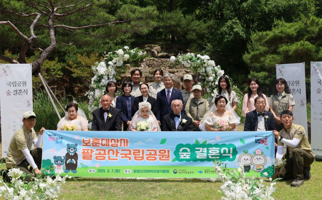 국가보훈부 대구지방보훈청(청장 김종술)은 7일 팔공산갓바위자생식물원에서 국가유공자 부부 3쌍을 위한 '숲 결혼식'을 진행했다.