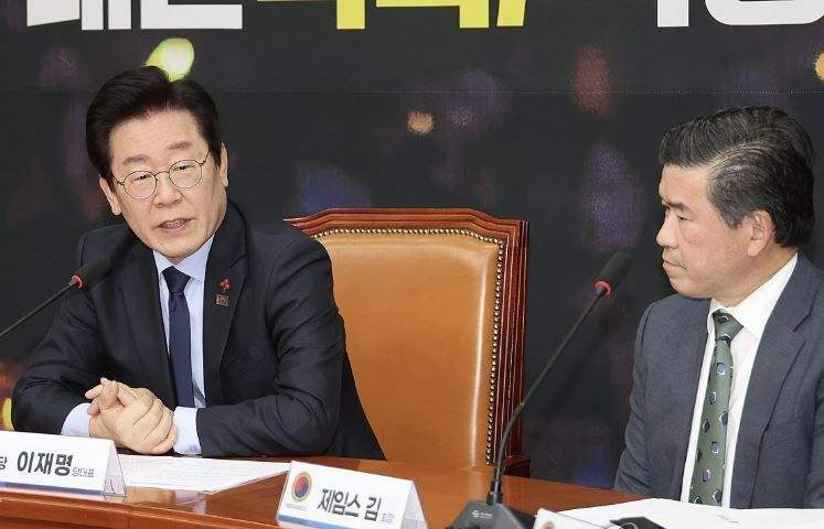 이재명 대통령(당시 더불어민주당 대표)이 지난해 12월16일 오후 서울 여의도 국회에서 제임스 김 주한미국상공회의소(암참) 회장을 접견하고 있다. 연합뉴스