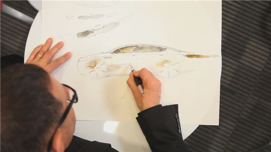 피터 슈라이어 전 현대차그룹 디자인 경영 담당 사장이 그린 자동차 디자인 스케치. 기아 제공