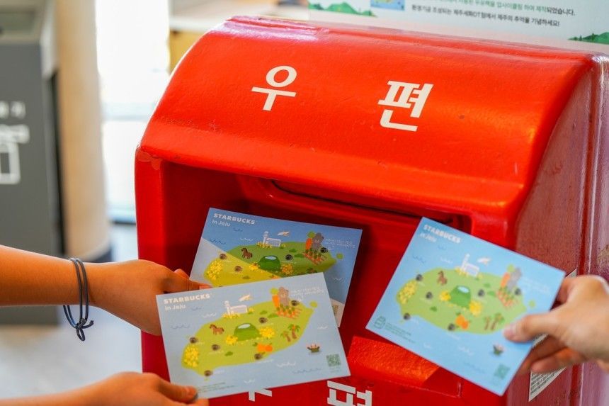 스타벅스코리아가 국내 스타벅스 최초로 우체통을 설치한 매장을 제주도에 선보였다.