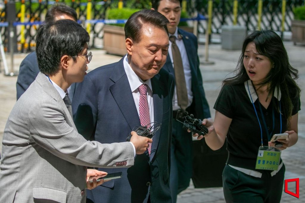 6·3 대선 이후 처음으로 재판에 출석한 윤석열 전 대통령이 대선 결과에 대한 질문에 침묵했다.