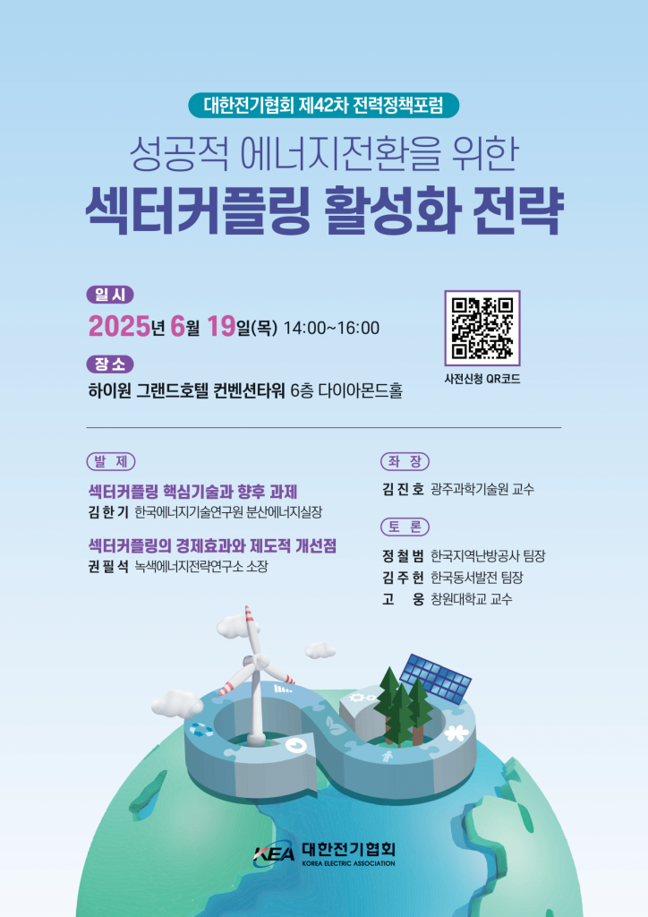 대한전기협회는 오는 19일 강원도 정선군 하이원 그랜드호텔에서 '성공적 에너지 전환을 위한 섹터커플링 활성화 전략'을 주제로 제42차 전력정책포럼을 개최한다고 9일 밝혔다.