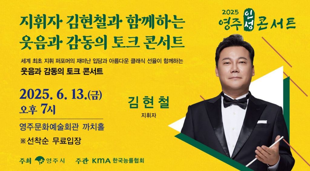 영주시가 오는 13일 오후 7시 영주문화예술회관 까치홀에서 '지휘자 김현철과 함께하는 웃음과 감동의 토크 콘서트'를 개최한다.