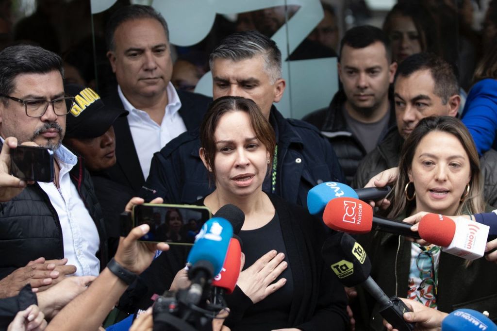 우리베 의원의 아내 마리아 클라우디아 타라조나와 치료를 담당한 산타페 재단 병원은 성명을 발표하고 있다. AFP연합뉴스