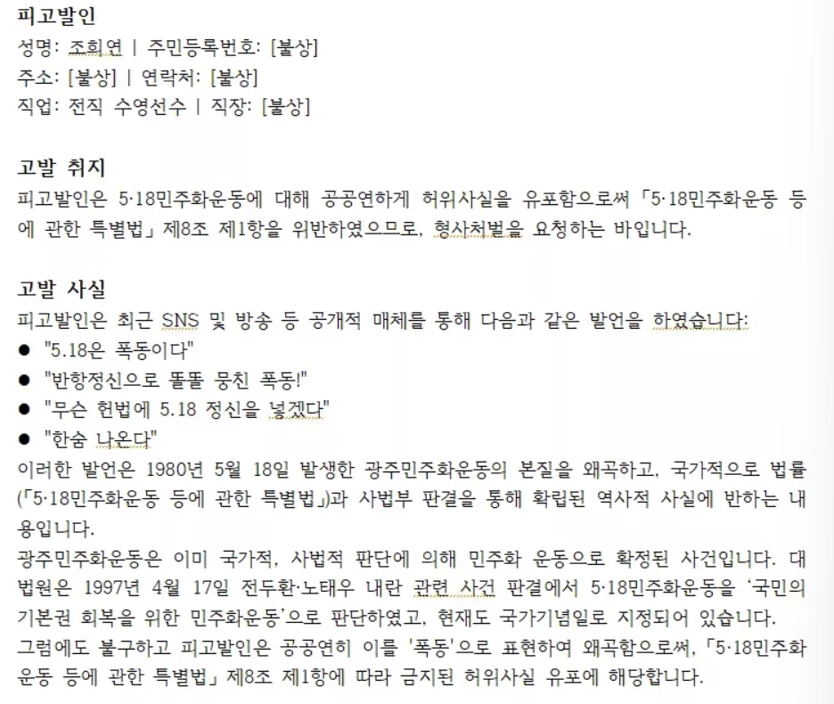 1998년 방콕 아시안게임 여자 수영 금메달리스트인 조희연이 5·18 광주 민주화운동을 폭동이라고 비하했다가 논란이 일자 사과했다.