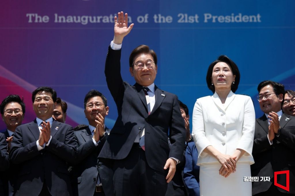 이재명 대통령이 취임선서식을 마친 뒤 잔디광장에 모인 시민들을 향해 인사하고 있다. 위 기사 이해를 돕기 위한 사진.