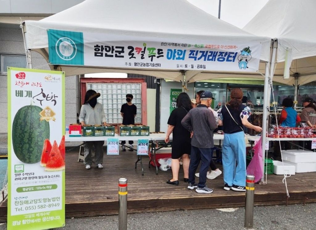 경남 함안군은 지난 6일부터 8일까지 3일간 함안휴게소 순천 방향과 칠서휴게소 양평 방향 휴게소 앞 야외 판매장에서 대표 농특산물인 함안 수박과 지역 신선 농산물 판매로 소비자들의 큰 호응을 얻었다고 9일 밝혔다.