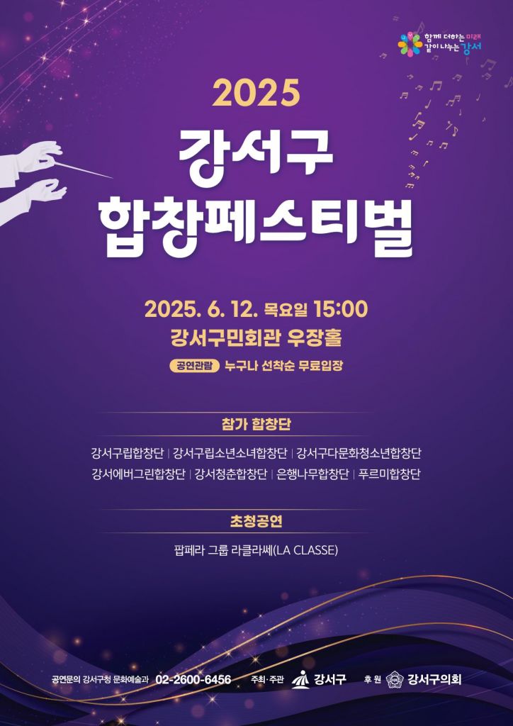 서울 강서구가 오는 12일 오후 3시 강서구민회관 우장홀에서 '2025 강서구 합창페스티벌'을 개최한다.