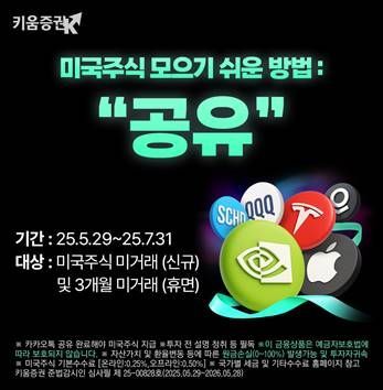 키움증권은 지인에게 공유하면 미국 소수점 주식을 주는 '미국주식 모으기 쉬운 방법: 공유' 이벤트를 진행한다고 10일 밝혔다.