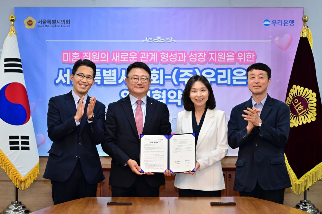 한편, 서울시의회와 우리은행은 지난 9일 결혼 친화적 조직문화 확산을 위한 지속적 협력에 합의하는 업무협약을 체결했다. 최호정 서울시의회 의장과 조세형 우리은행 부행장은 두 기관이 결혼 친화적 조직문화를 확산하기 위해 지속적으로 협력한다는 내용이 담긴 협약서에 서명했다.