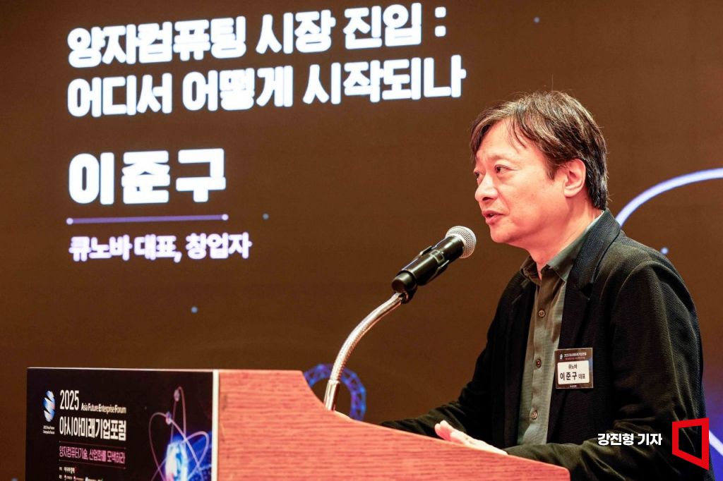 이준구 큐노바 대표는 11일 서울 중구 소공동 롯데호텔에서 열린 '2025 아시아미래기업포럼'에서 이같이 말하며 양자컴퓨팅의 실제 적용 사례와 산업적 가능성을 설명했다.